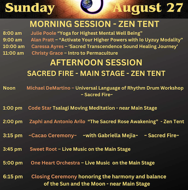 Sunfire Festival is my new beginning and is a sacred container supporting my mission to keep the legacy of the Star Teachings alive. Many souls are awakening and “coming online”. We all have piece of the puzzle and sacred remembrances of ancient wisdom. NOW is the time to gather on the earth, under the sun and stars, in our physical presence, to share our gifts and do our part in this Ascension Window together.